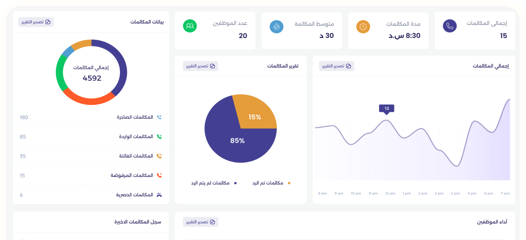من تتبع المكالمات إلى ساعات العمل وتحليل الأداء – كل الأرقام اللي تهمك قدامك بشكل لحظي
