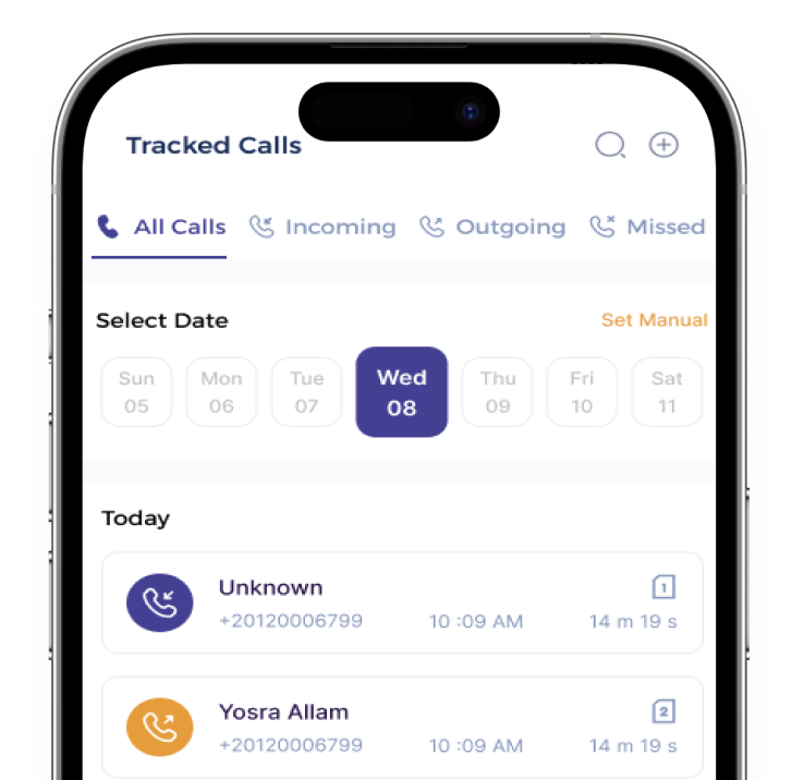 كل مكالمة، صادرة أو واردة، مسجّلة ومنظّمة – تقدر تراجعها، تشاركها، وتعرف مكانها بدقة.